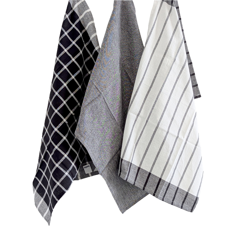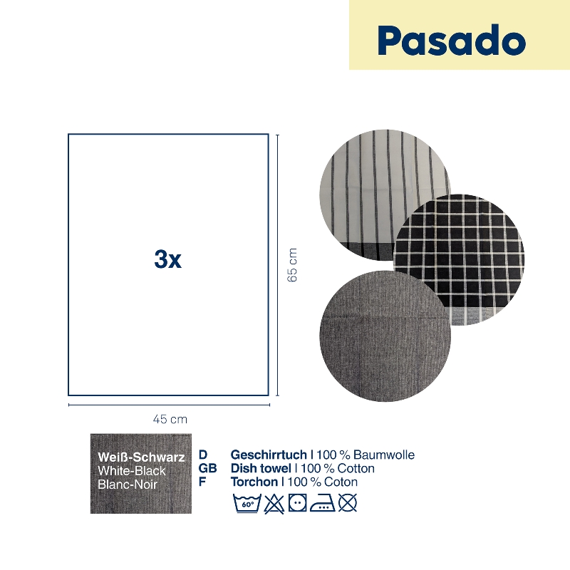 Geschirrtücher Pasado, 3er Set in den Farben Schwarz/Weiß je 65 x 45 cm.