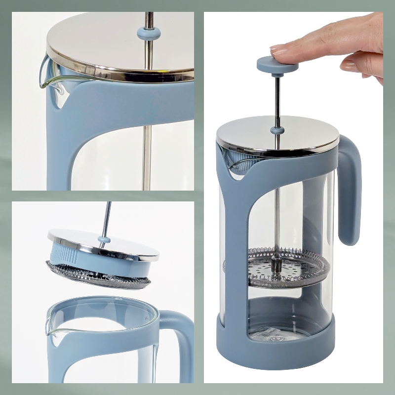 Kaffeebereiter Verona, aus Borosilikatglas mit Kunststoffgehäuse in Rauchblau, 21 cm hoch, 1,0 Liter.