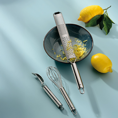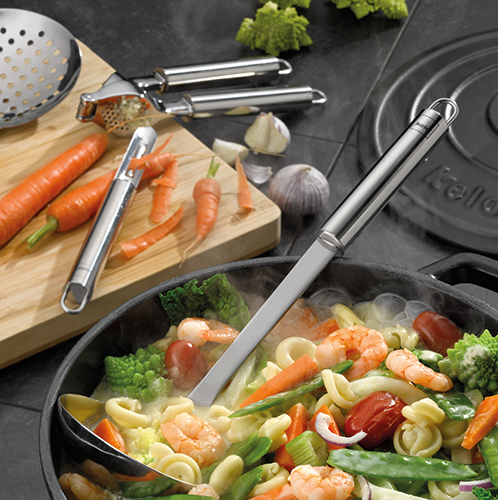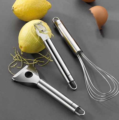 Small helpers for everyday use in the kitchen such as wooden spoons, spatulas, whisks and salad servers.