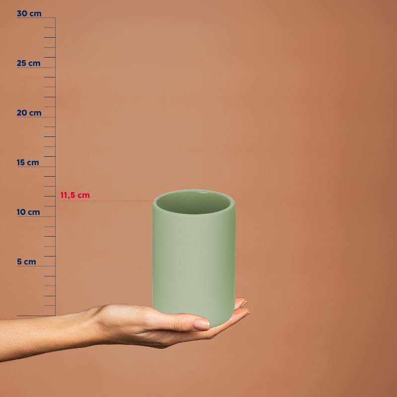 Mit einer Höhe von 11,5 cm ist der Zahnputzbecher aus hochwertiger Keramik ein elegantes Accessoire, das sich nahtlos in die Sana-Serie einfügt. Der minimalistische, nordische Stil bringt zeitlose Eleganz und Ordnung in dein Bad. Ideal für Zahnbürsten, Zahnpasta und andere Kleinigkeiten, bietet der Becher ausreichend Platz und bleibt dennoch kompakt.