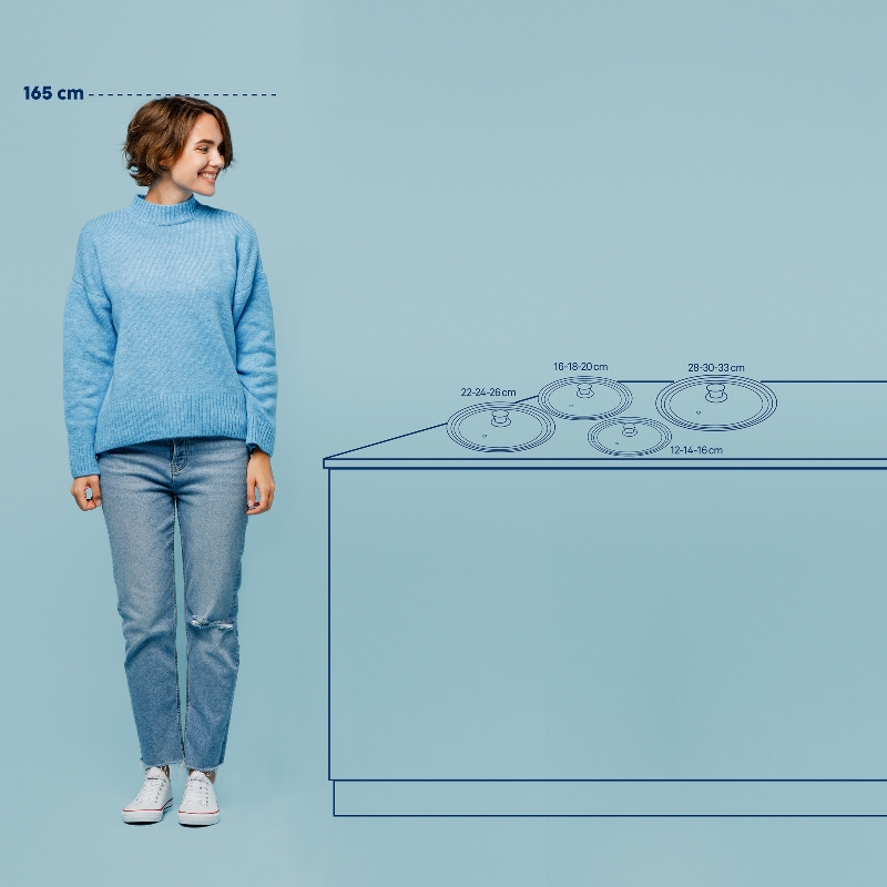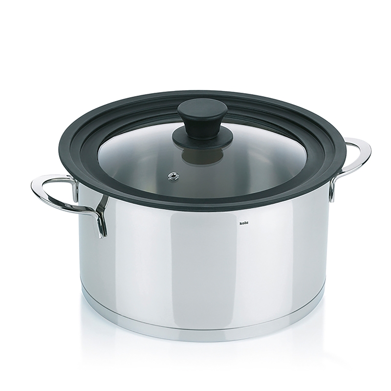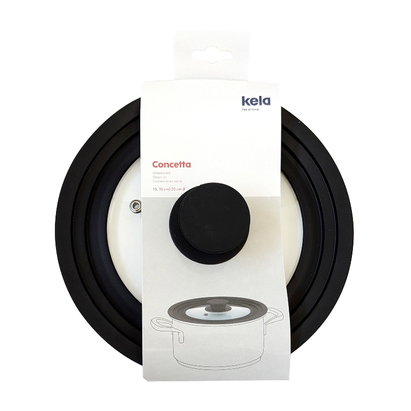 Glasdeckel mit Silikonrand passt auf Töpfe und Pfannen mit einem Durchmesser von 16, 18 und 20 cm.