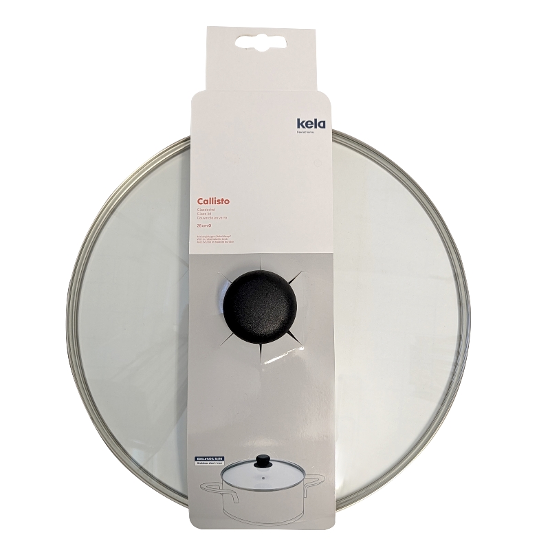 Der Glasdeckel Callisto hat einen hochwertigen Edelstahlrand aus 18/10 Edelstahl und einen schwarzen Bakelitknopf. Der Deckel ist hitzebeständig bis 180° C, sodass Topf oder Pfanne samt Deckel auch mal zum Schmoren oder Warmhalten in den Backofen kommen können.