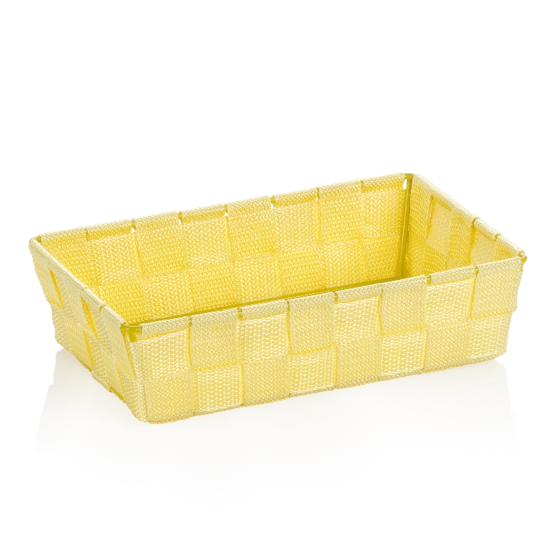 Korb Alvaro aus stabilem PP-Faserband in der Farbe sonnengelb, Maße: 23 x 15 x 6 cm.
