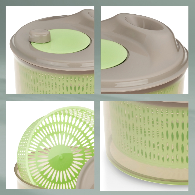 Das Prinzip einer Zentrifuge ermöglicht es Ihnen schnell die frisch gewaschenen Salatblätter von überschüssigem Wasser zu befreien und so ein Verwässern Ihrer Salatsoßen zu vermeiden. Durch das Loch am Deckel zirkuliert die Luft besser dadurch kann der Salat schneller und effektiver getrocknet werden.