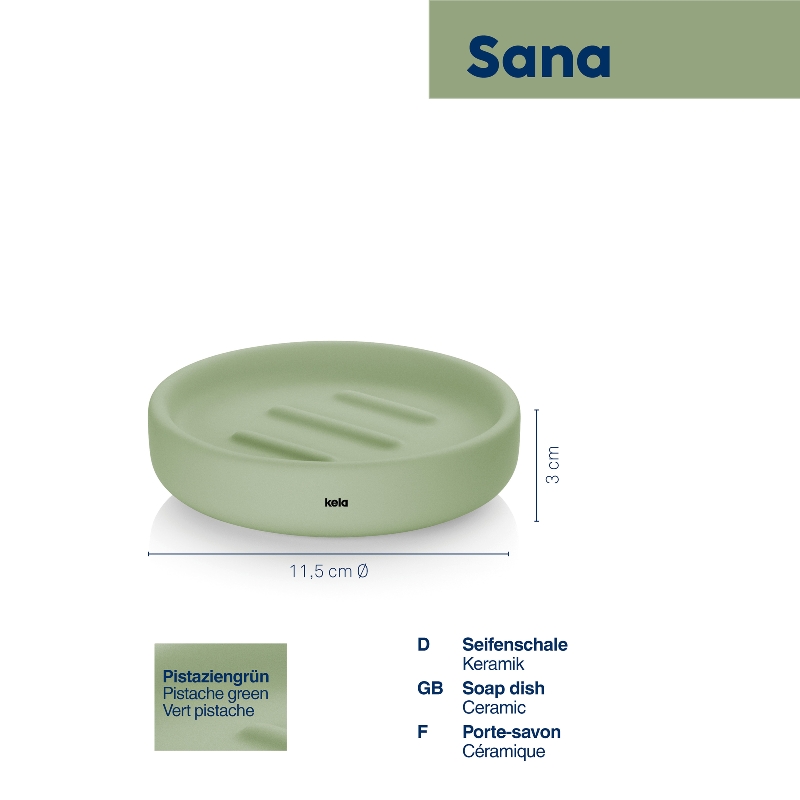 Seifenschale Sana, Keramik, pistaziengrün. Ø 11,5 cm.