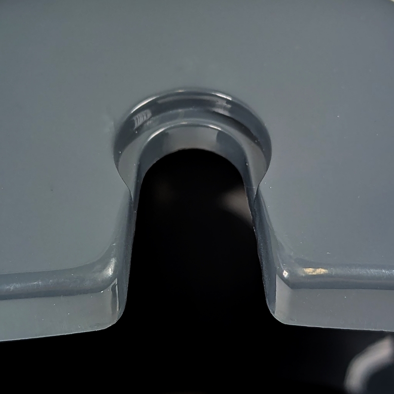 Der quadratische Behälter ist halbseitig offen.