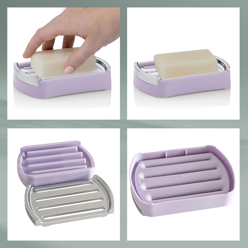 Marta soap dish made of plastic in the colour purple. Dimensions: 12.5 x 9 x 2.5 cm.
